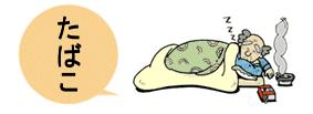 - 投げ捨て、寝たばこはしない。