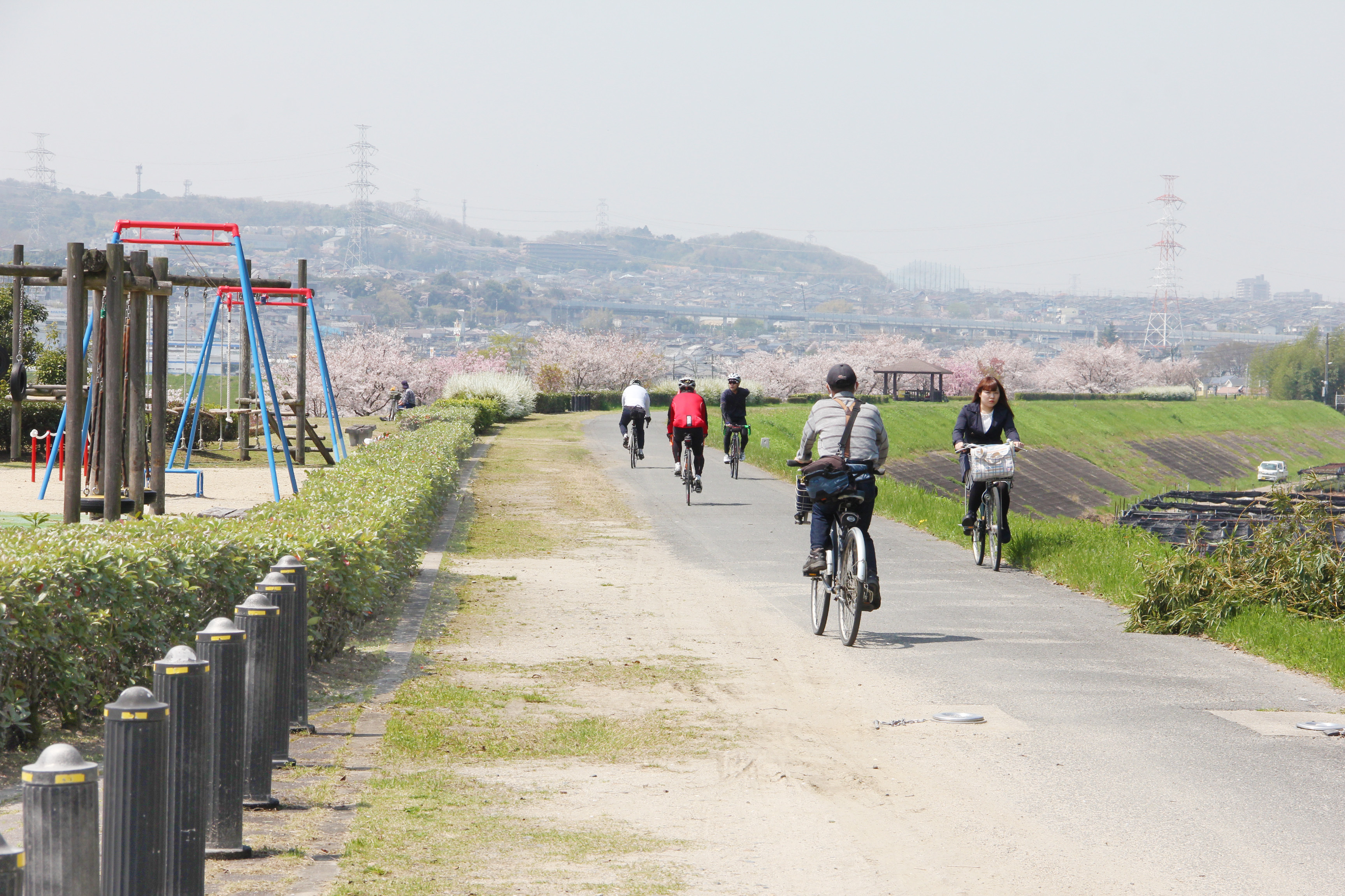 公園は木津川沿いの京都八幡木津自転車道に面しているので、