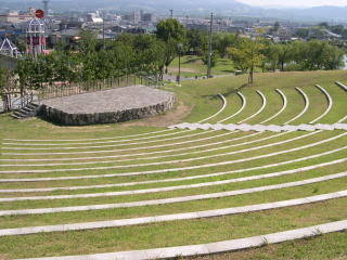 石舞台50平方メートル、芝生スタンド550平方メートルで収容人数は800人です。