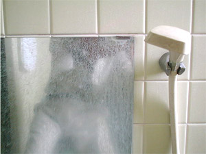 風呂場の鏡に白い物質が付着し、拭いても取れない・・・