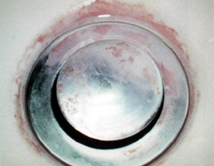 台所のふきんが桃色に染まる、浴室のタイル、便器の内側などが桃色になる・・・