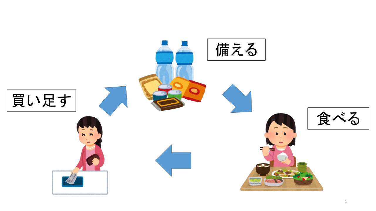 •そのため、普段の食品を少し多めに買い置きしておき、古いものからふだん使いし、使った分を買い足していくようにすれば