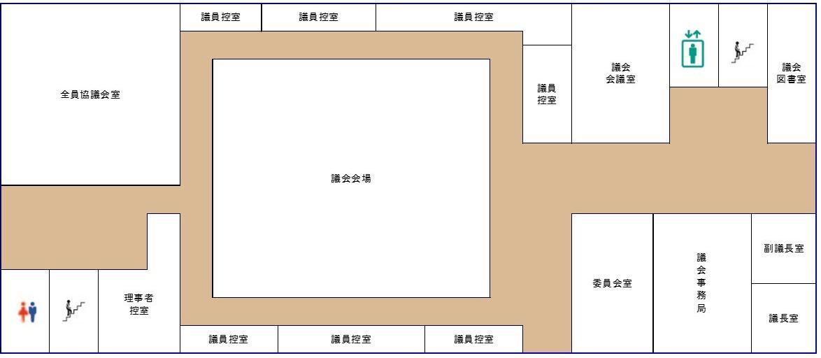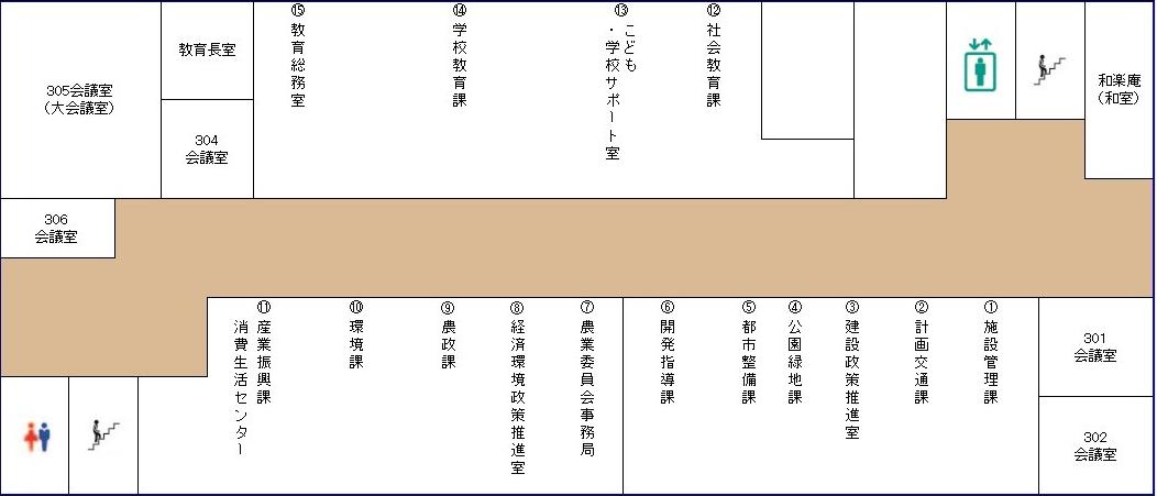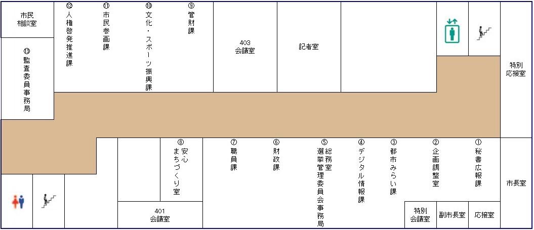 市役所庁舎は立地(斜面)の都合上、2階に正面入口があります。ご注意ください。