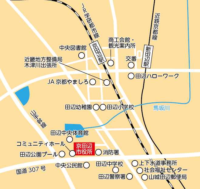 近鉄京都線・新田辺駅から約1.4km(所要時間は約20分)