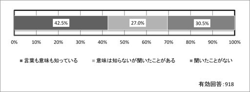 『3R(スリーアール)』について、本市は、42.5%の人が、言葉も意味も知っていると回答しており、平成21年度に内閣府が調査した結果(29.7%)に比べて高く、本市の認知度がかなり高いことが伺えました。