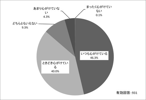 「日頃からごみの減量やリサイクルを心がけていますか。」という設問について、本市では86.3%の人が、心がけている("いつも"と"ときどき"の合計)と回答しており、ほとんどの市民が日頃からごみの減量やリサイクルを心がけていることがわかりました。