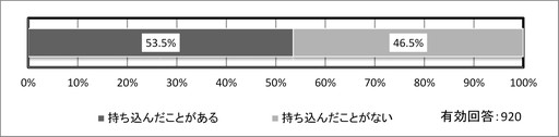 市民が環境衛生センターにごみを持ち込むことについては、「持ち込んだことがある」という回答が53.5%と半数以上でした。また、持ち込むごみの中で最も多かったのが「粗大ごみ」となっていました。持ち込む頻度については、「数年に1回」という回答が59.8%と最も多く、次いで「年数回」が36.6%となっていました。