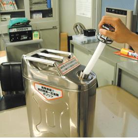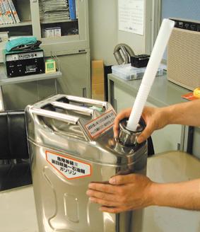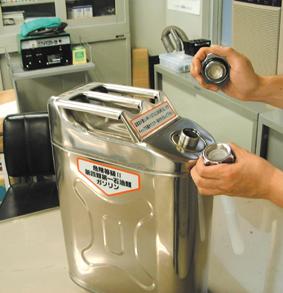 - 携行缶を地面に置くなどして静電気の除去を行うこと(接地導線を使用すれば更によい)