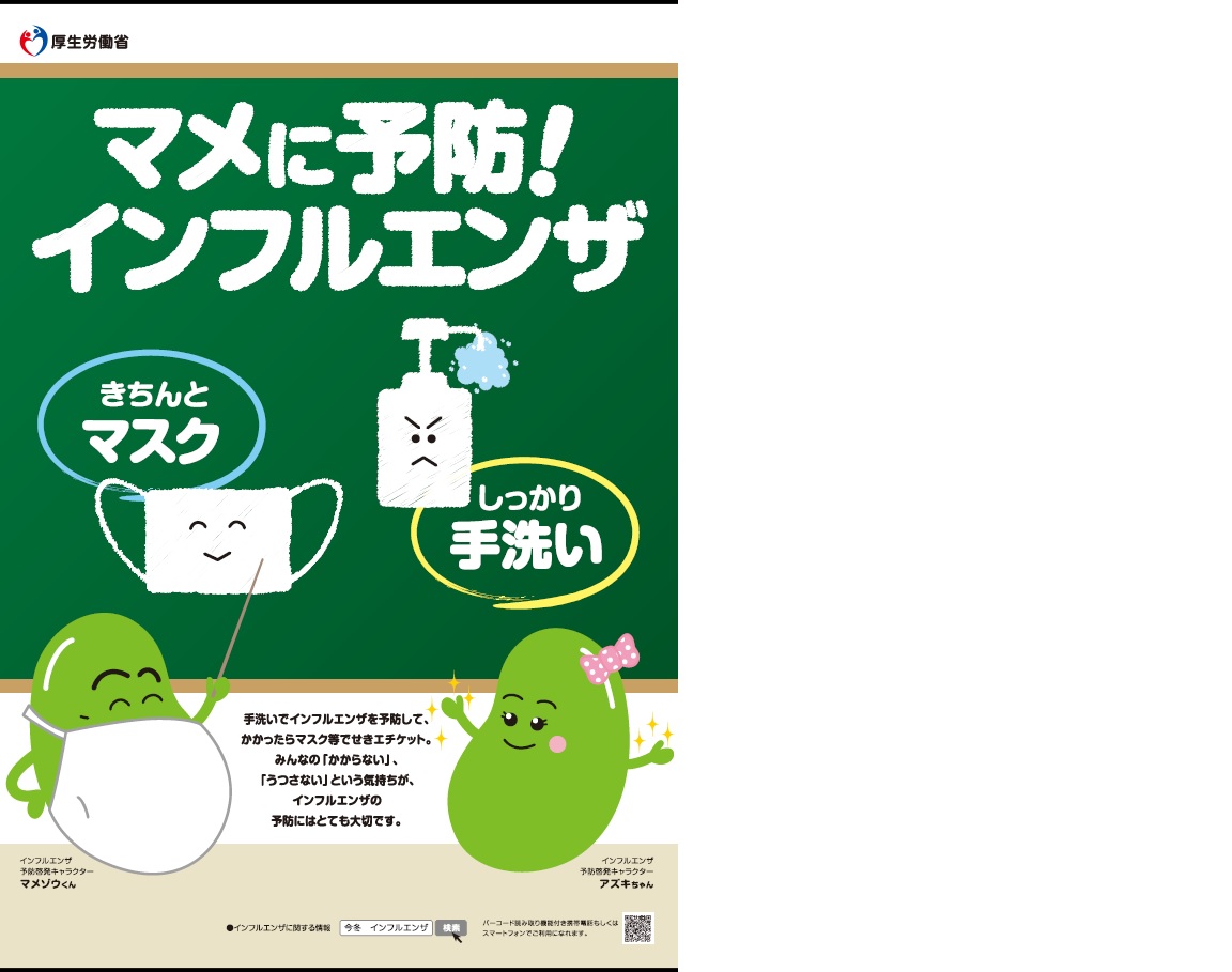毎年秋から冬にかけては、インフルエンザの流行シーズンです。高熱や関節の痛みなどを伴い、人によっては重症化するおそれもあります。流行を防ぐためには、原因となるウイルスを体内に侵入させないことや周囲にうつさないようにすることが重要です。インフルエンザの感染を拡げないために、一人ひとりが「かからない」「うつさない」対策を実践しましょう。