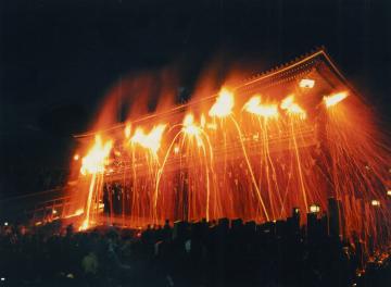 二月堂でのお水取りの様子(提供:山城松明講社)