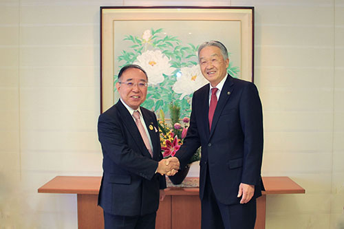 石井明三市長と枚方市の竹内脩市長は、12月19日、京田辺市役所において、老朽化が進む本市環境衛生センター甘南備園と枚方市穂谷川清掃工場第3プラントのごみ焼却施設の建て替え整備のあり方について協議し、可燃ごみの処理を両市で共同して進めていくことを合意しました。