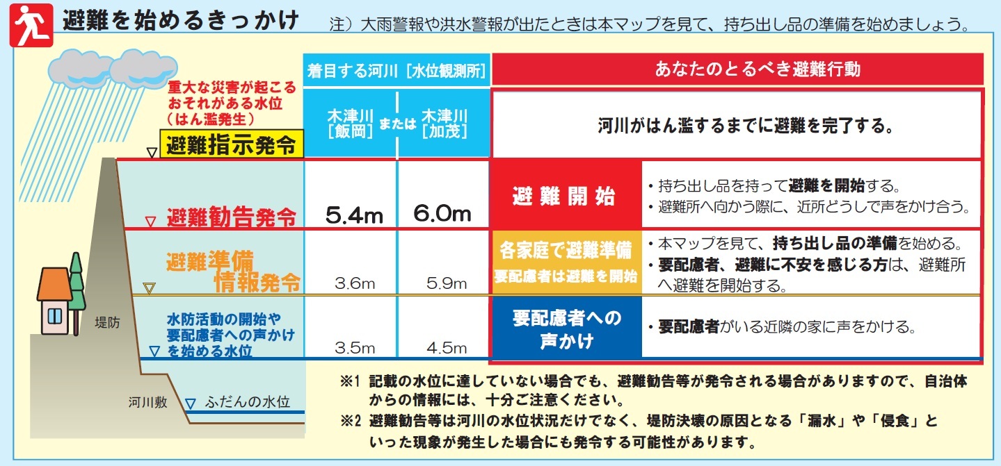 地域版防災マップ裏面の「避難を始めるきっかけ」について、変更を行っています。