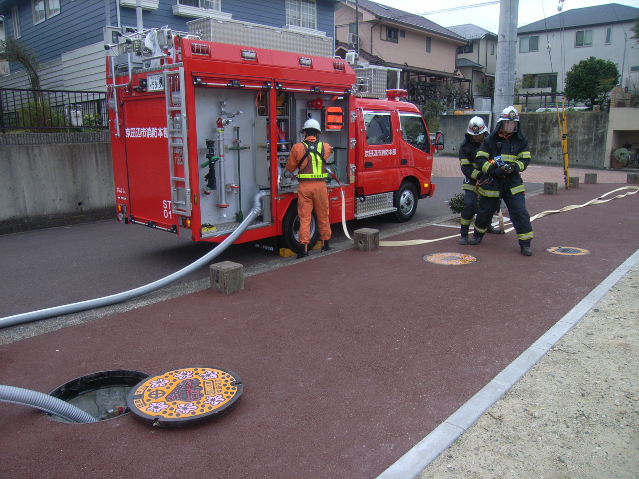地震等で水道が寸断された場合でも消火活動が円滑に実施できるよう、耐震性の防火水槽を整備する。(設計:新田辺西公園、大住ケ丘第2公園 工事:防賀川公園)