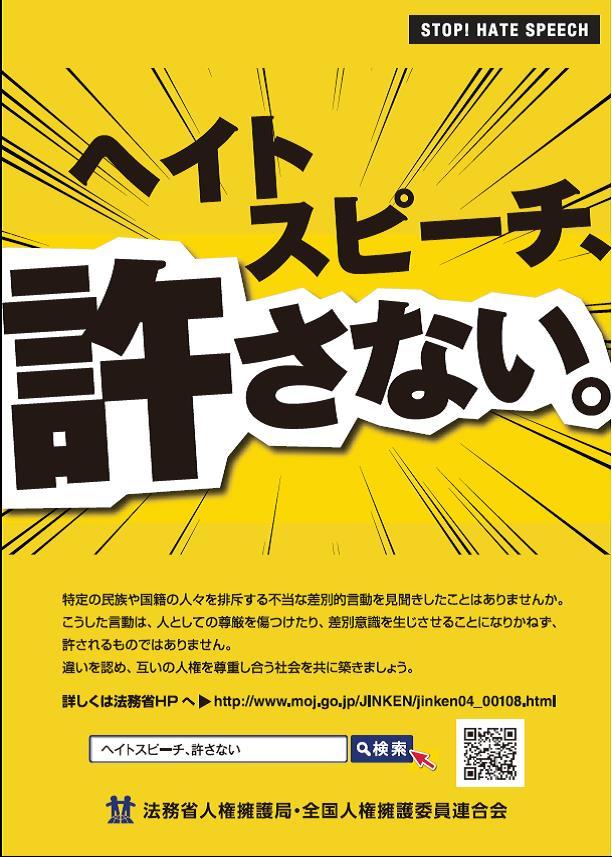 ヘイトスピーチ解消のための法律(本邦外出身者に対する不当な差別的言動の解消に向けた取組の推進に関する法律)が施行されました