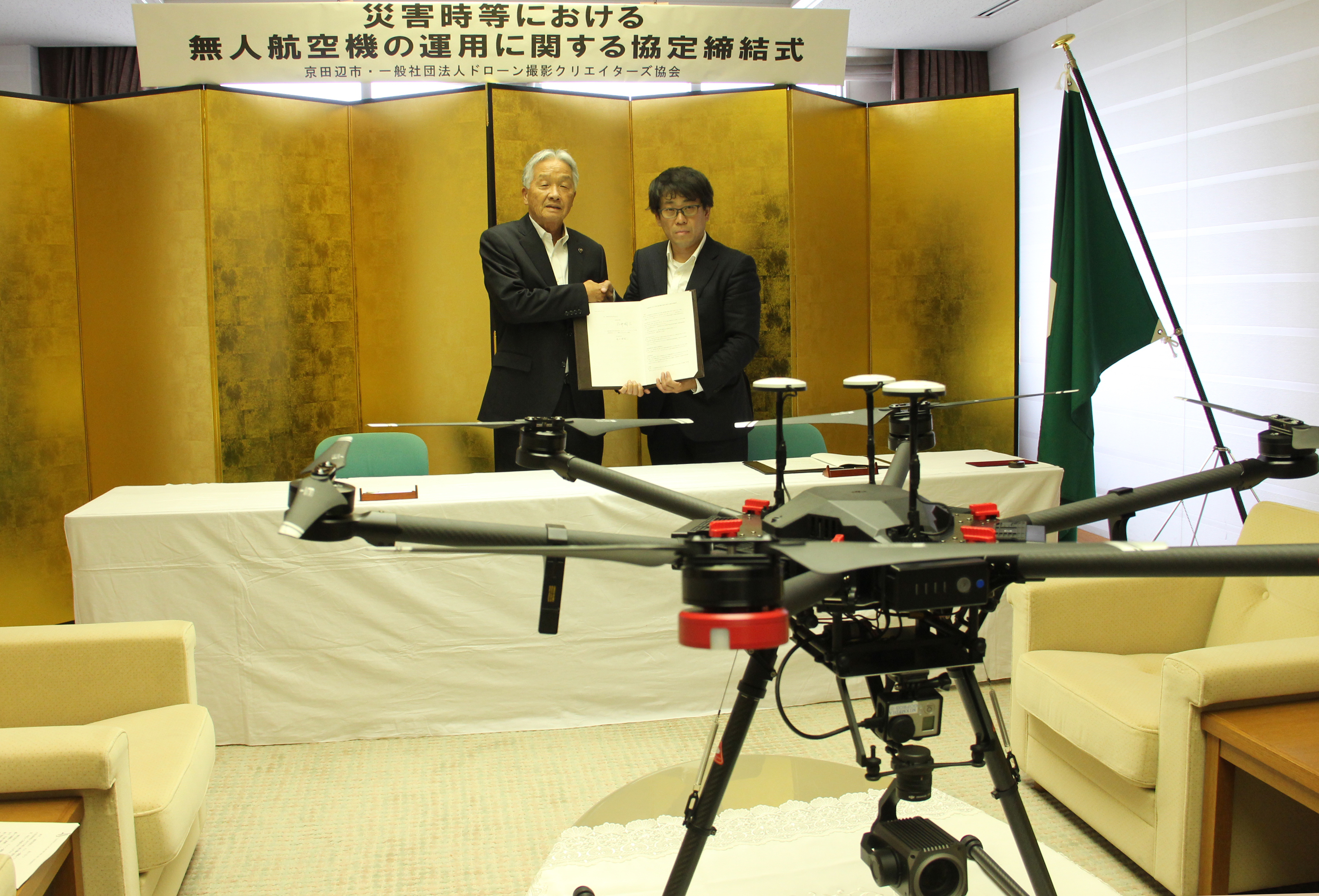 平成29年6月1日、ドローンの操縦技術や専門知識を持った人材を育成されている、一般社団法人ドローン撮影クリエイターズ協会と「災害時等における無人航空機の運用に関する協定」を締結しました。