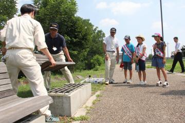 公用車で市内視察。まずは「防賀川公園」を訪れ、防災機能の確認