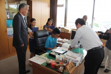 子どもたちが市長の公務や市役所の業務を体験することにより、郷土愛を育むとともに、市政への関心と理解を高めることを目的として、一日市長体験事業を実施しました。