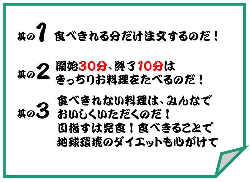 食べきれる量のみ注文し、食べられないものは事前にお店の人に伝えましょう!