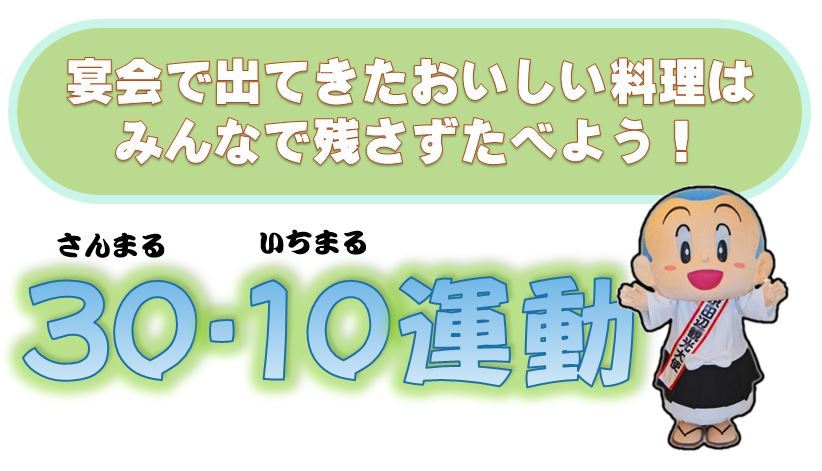 3010運動(さんまるいちまる運動)は、忘年会や新年会等の宴会の席から「食品ロス」を減らしていく取組です。