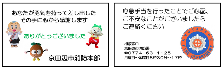 この救急感謝カードは救急現場で応急手当実施者に対して、感謝の気持ちと心理ストレスを軽減するため救急隊から手渡しすることにしました。