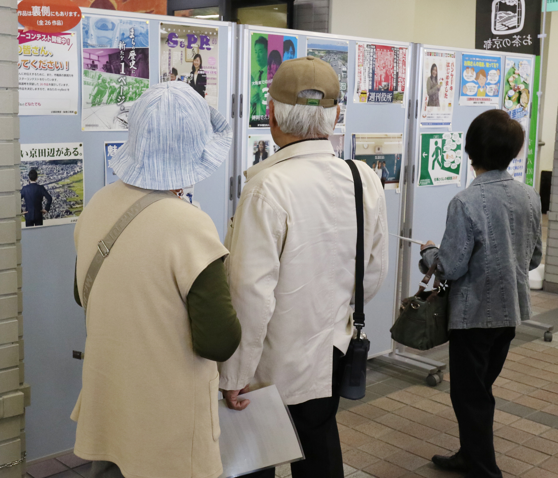 市役所市民ロビーで投票作品を選ぶ市民の皆さん