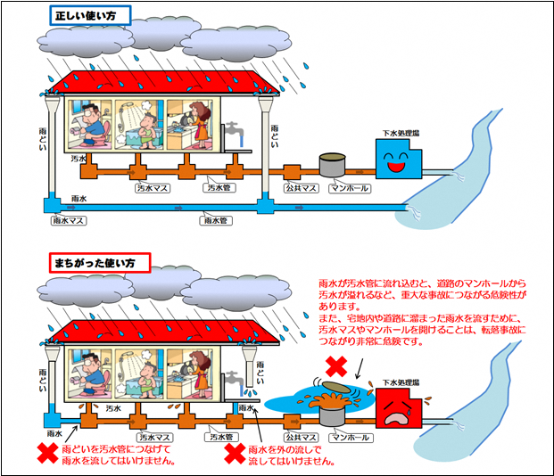 下水道(汚水管)に雨水が流れ込まないようにしましょう!