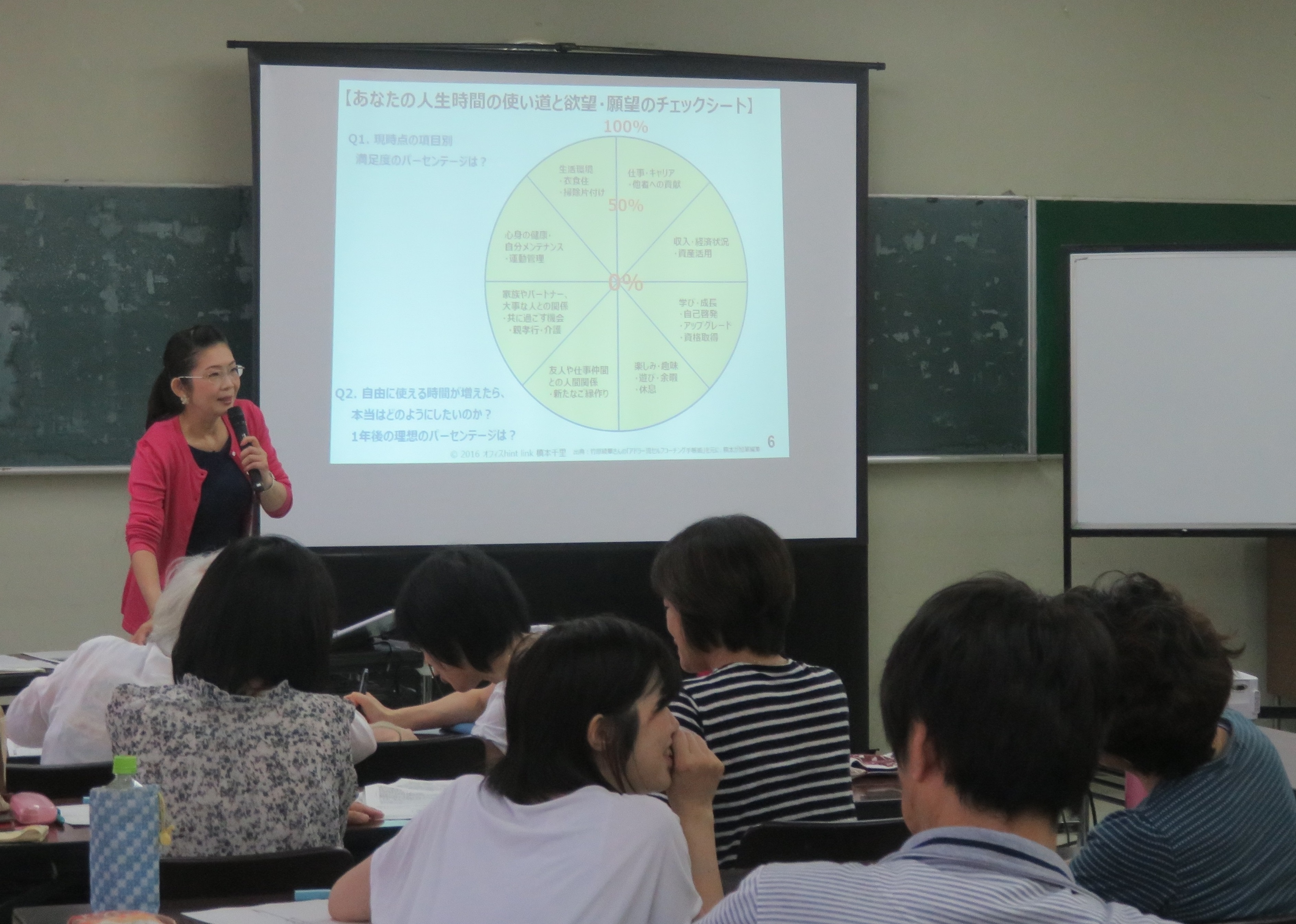 ・手帳の使い方、色分けする方法はすてきだと思いました。自己実現、自分がやりたいことを真剣に考えようと思います。 ・職場の業務が多く何からしてよいか迷ってしまうことがあり、これからは槙本先生のTODOリストを活用させていただきます。 講義すべてがヒントになりました。 ・まず自分のやりたい事をしっかり見つめ直し、タイムマネジメントして、楽しくこれからの人生を生きていきたいと思います。 |