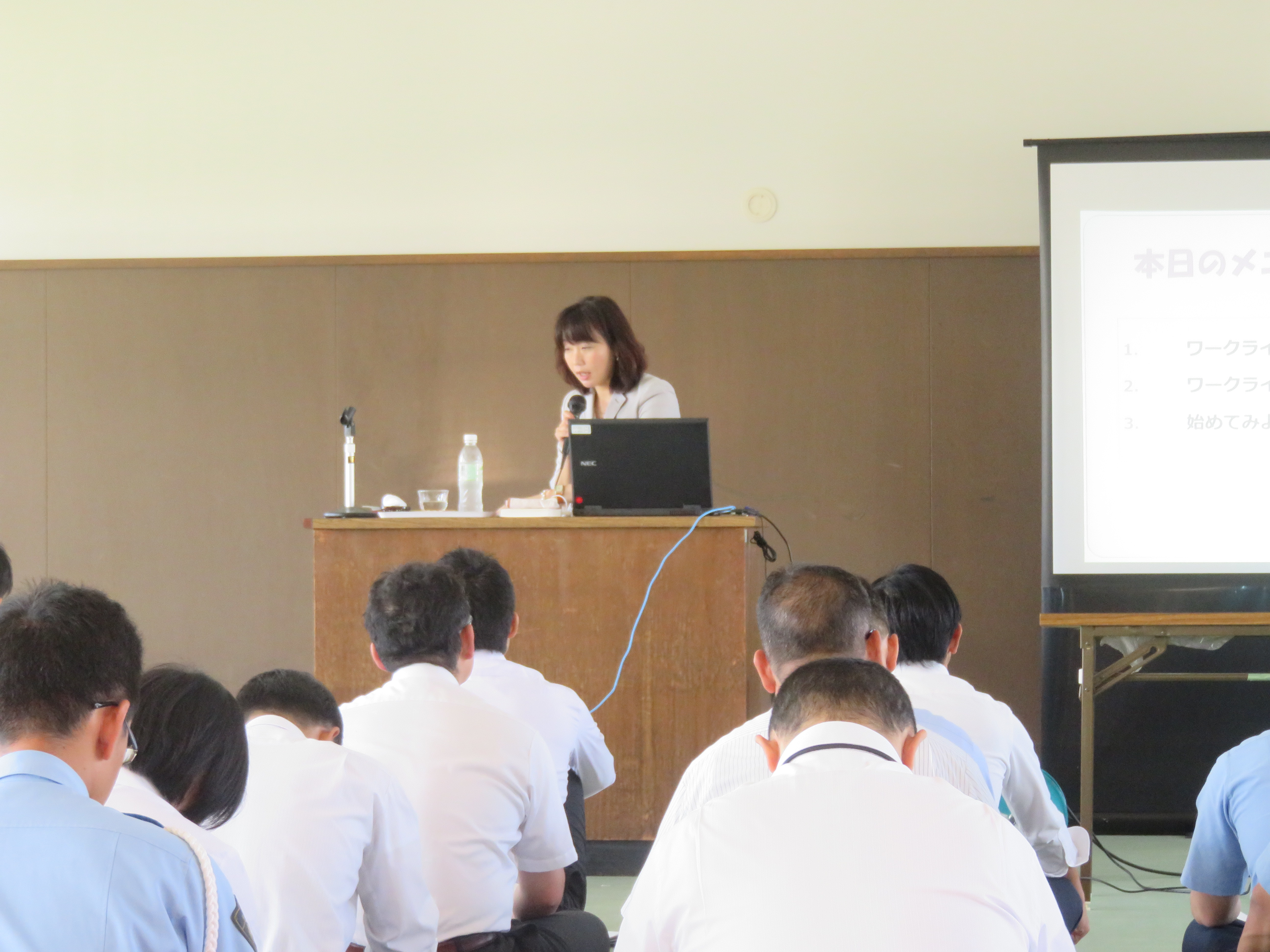 職場と家庭の両立などについてお話を伺い、働きやすい職場環境作りについて講演していただきました。