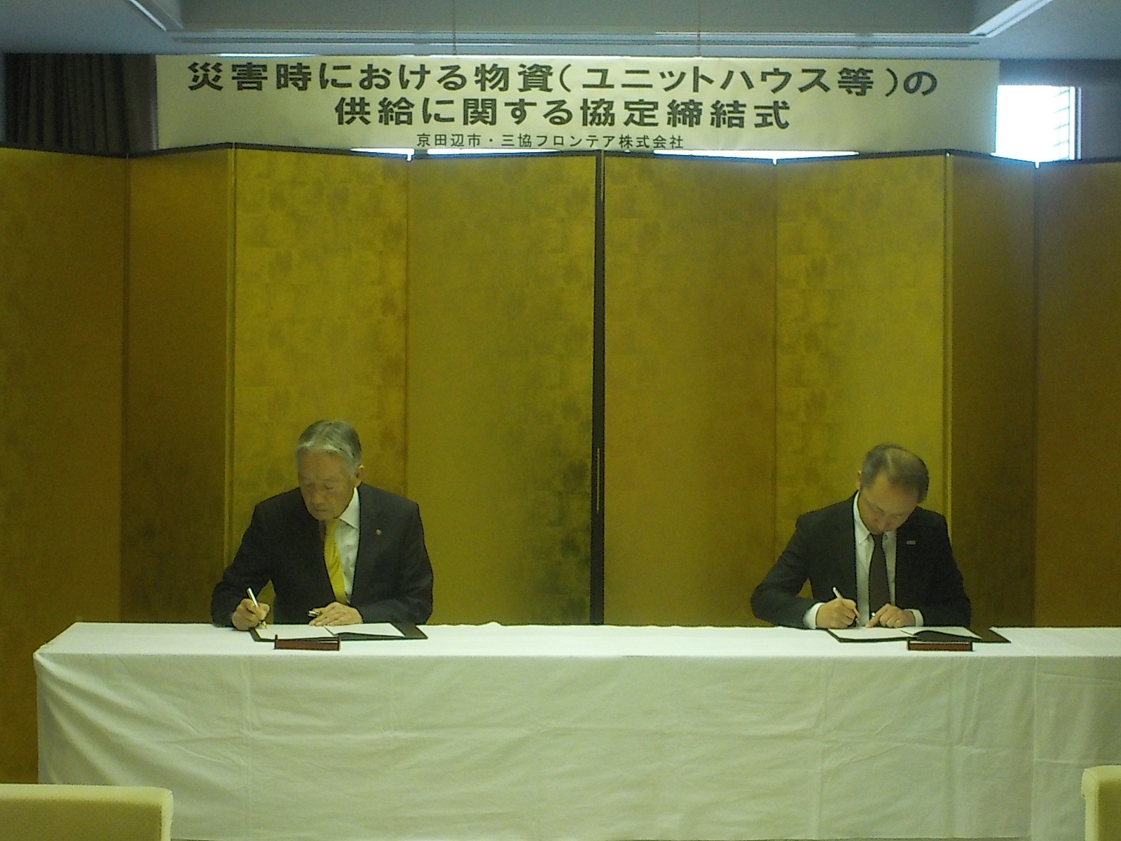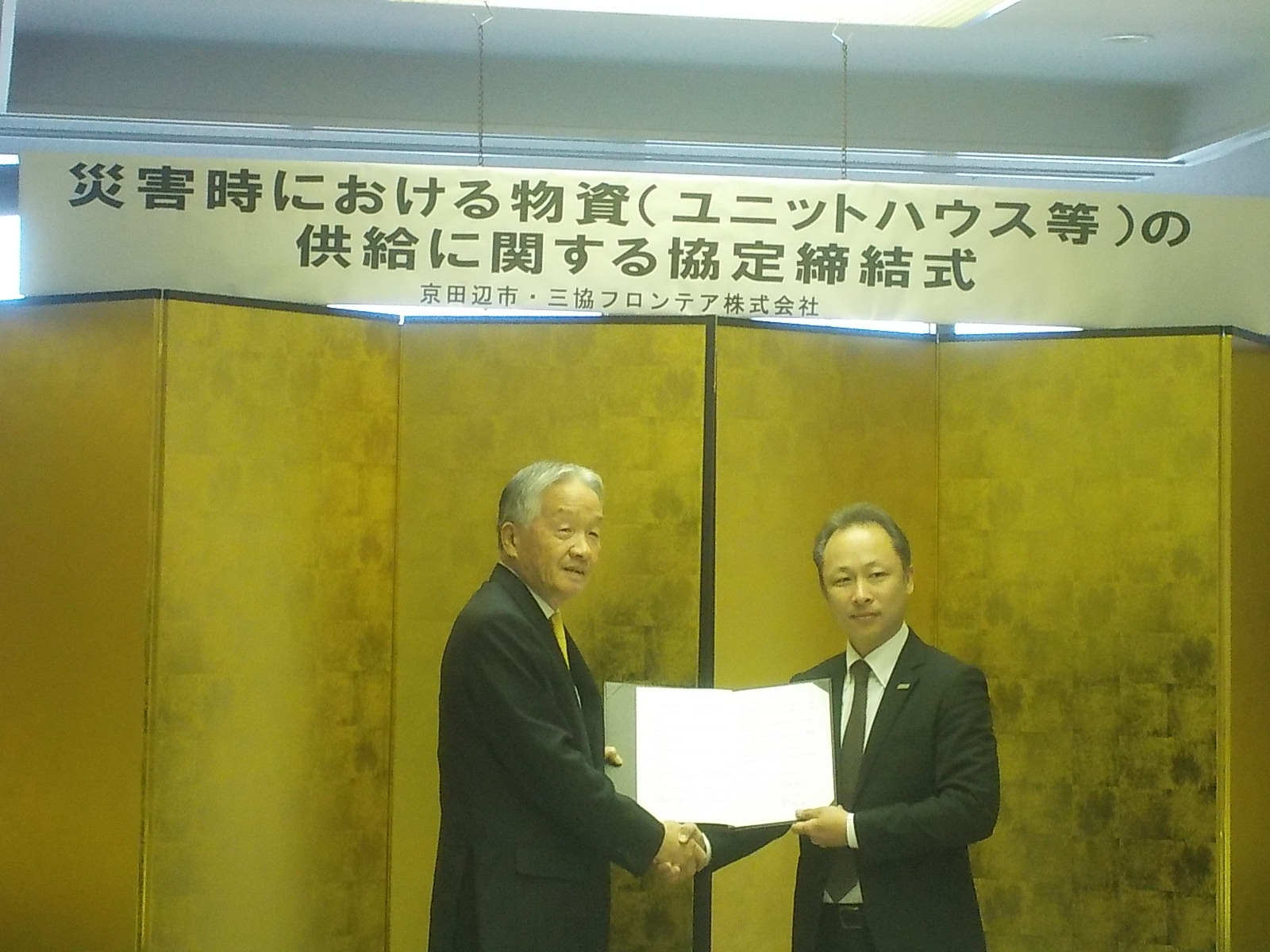 平成30年12月11日に、市は三協フロンテア株式会社と「災害時における物資(ユニットハウス等)の供給に関する協定」を締結しました。
