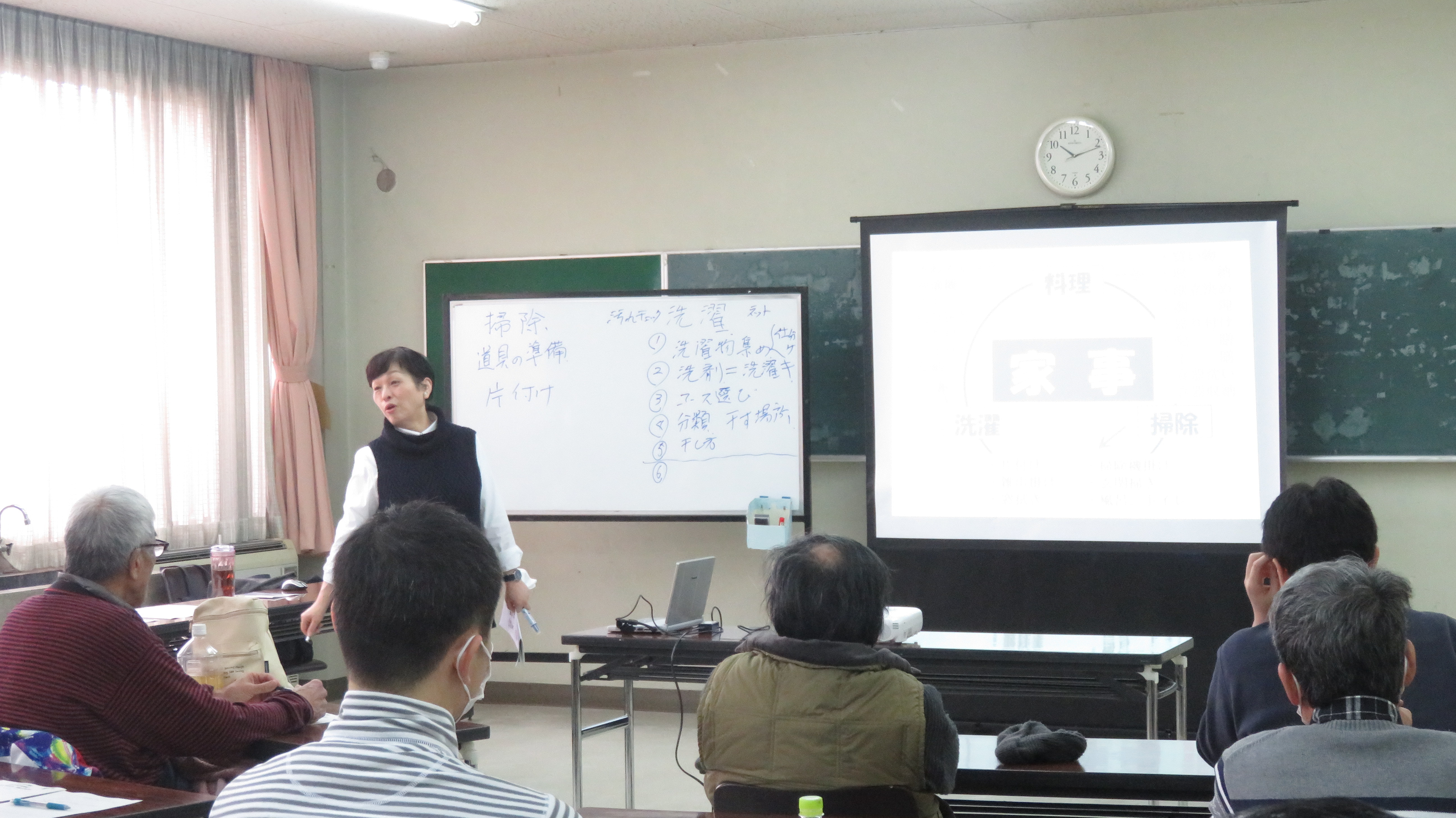 ・何気なくやっていましたが、手順を覚えることで、早く、きれいになることが分かりました。 ・洗濯と掃除の基礎知識が習得できて、有益であった。 ・これまで掃除をあまりしなかったが、これからはもう少しやりたいと思いました。 ・今日のカジダン講座を機会に頑張ります。 |