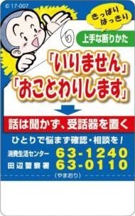 ☆勧誘の電話に出てしまったら、必要がなければ「お断りします」「いりません」と きっぱり・はっきり 断りましょう。断っているのに再度勧誘することは法律で禁止されています。