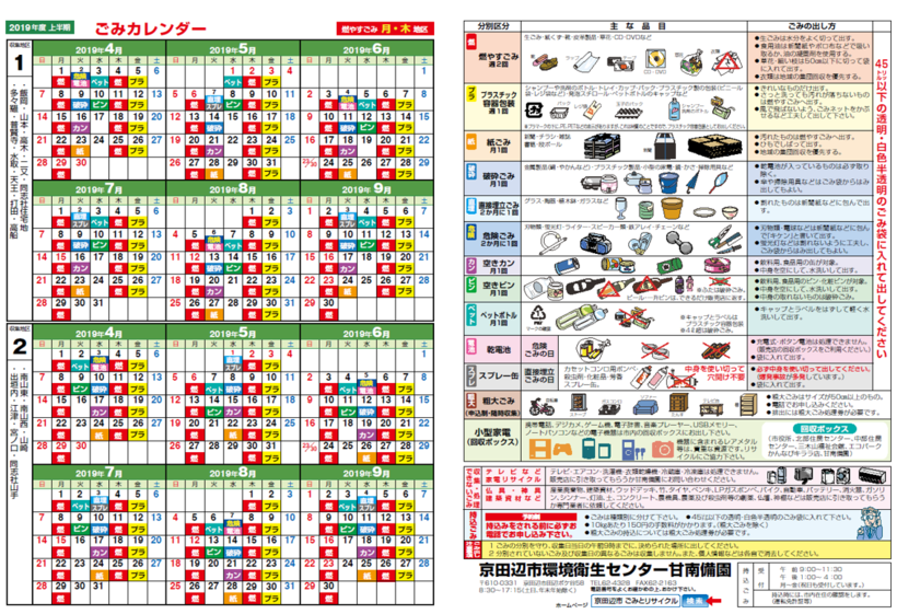 Kyotanabe City Garbage Collection Calendar 京田辺市(きょうたなべし) ごみ カレンダー