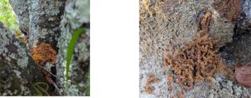 今回確認されたクビアカツヤカミキリの被害木及びフラス