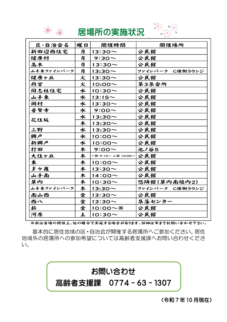 電話: (高齢者支援)0774-63-1307(地域包括支援)0774-63-1268