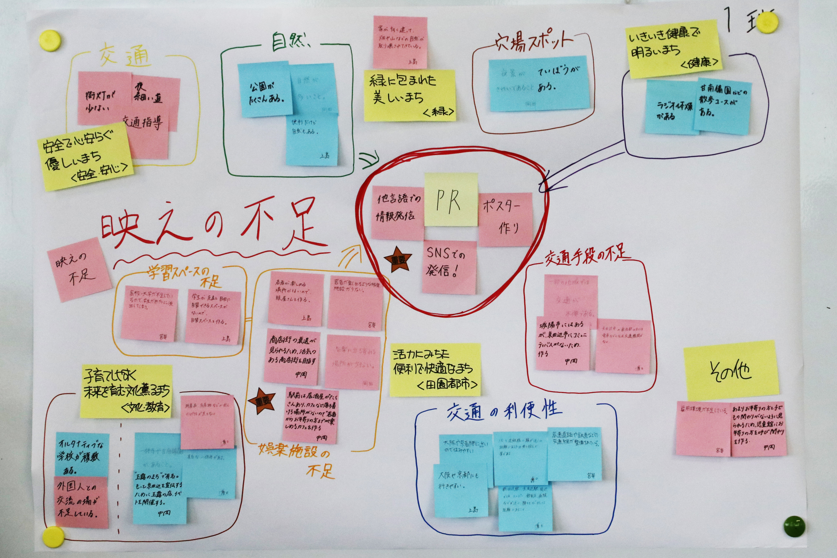2つめは「まちのことを考える」ということ。今日皆さんは考えてくれました。「映え」のこと、交流のこと。