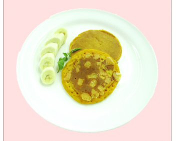 すりおろした人参とチーズが入っているカルシウムたっぷりで油不使用のホットケーキです。