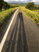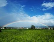コメント:夏の終わり、家の中から虹が見えました。外へ出て農道から撮っていたら、軽トラが走ってきたので、あわてて道を空けようとしたら、「ええから、ゆっくり撮り~」といってもらい、恐縮しました。見えにくいですが、二本めの虹が左上に出てます