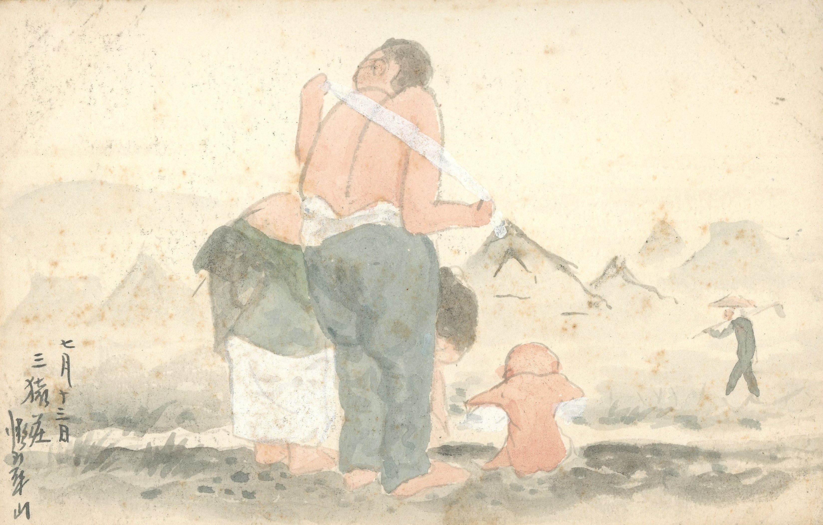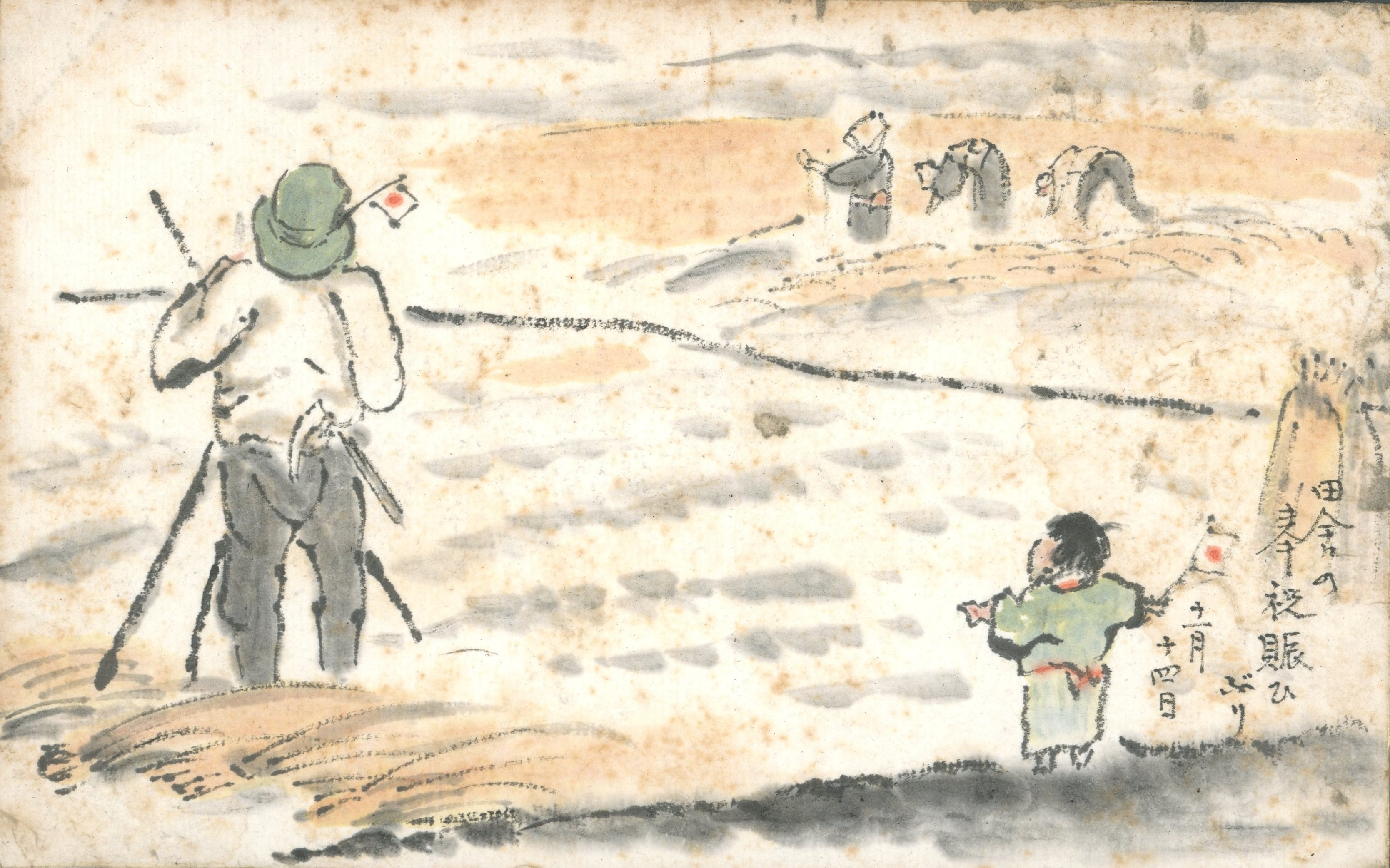 ここでご紹介する絵葉書は、古書店で販売されていたものを市史編さん室が令和元年に購入したものです。普賢寺村に移り住んだ翠山が昭和3年(1928)から3年ほどの間、支援者と思われる京都市の医者、斎藤圭介に送ったものでした。驚かされるのは内容の多彩さで、昭和初年の京田辺周辺の様子が97枚の葉書に、いきいきと、魅力的に描かれています。翠山が親しみをおぼえた動植物をはじめ、現在では見ることのできない当時の営みや景観も含まれます。これらは歴史的な記録として貴重なものですが、一人の画家が魅力を感じ、居を定めた京田辺の往時の姿でもあり、京田辺市の所蔵となったことは喜ばしいことだと思われます。京田辺に暮らす方々がこの絵葉書をご覧になり、日常で目にしておられる光景と比較すれば、発見も少なくないのではないでしょうか。