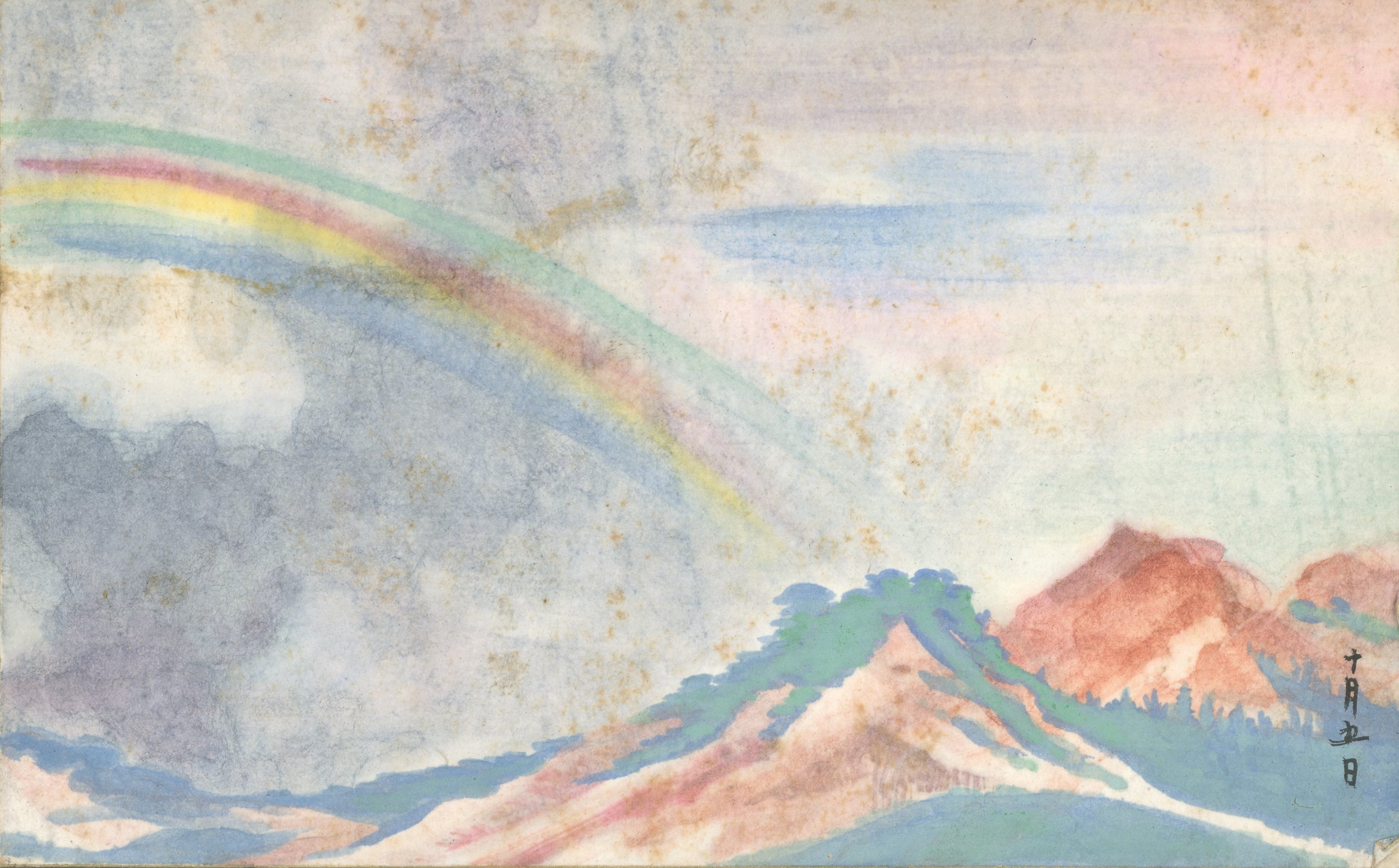 「今日午後一ト時、木枯に似た寒い風が吹きました、然(しか)し直(す)ぐやんで温かくなりました、夏あまり見なかつた虹が不思議にも秋の此頃(このごろ)に時々出ます」