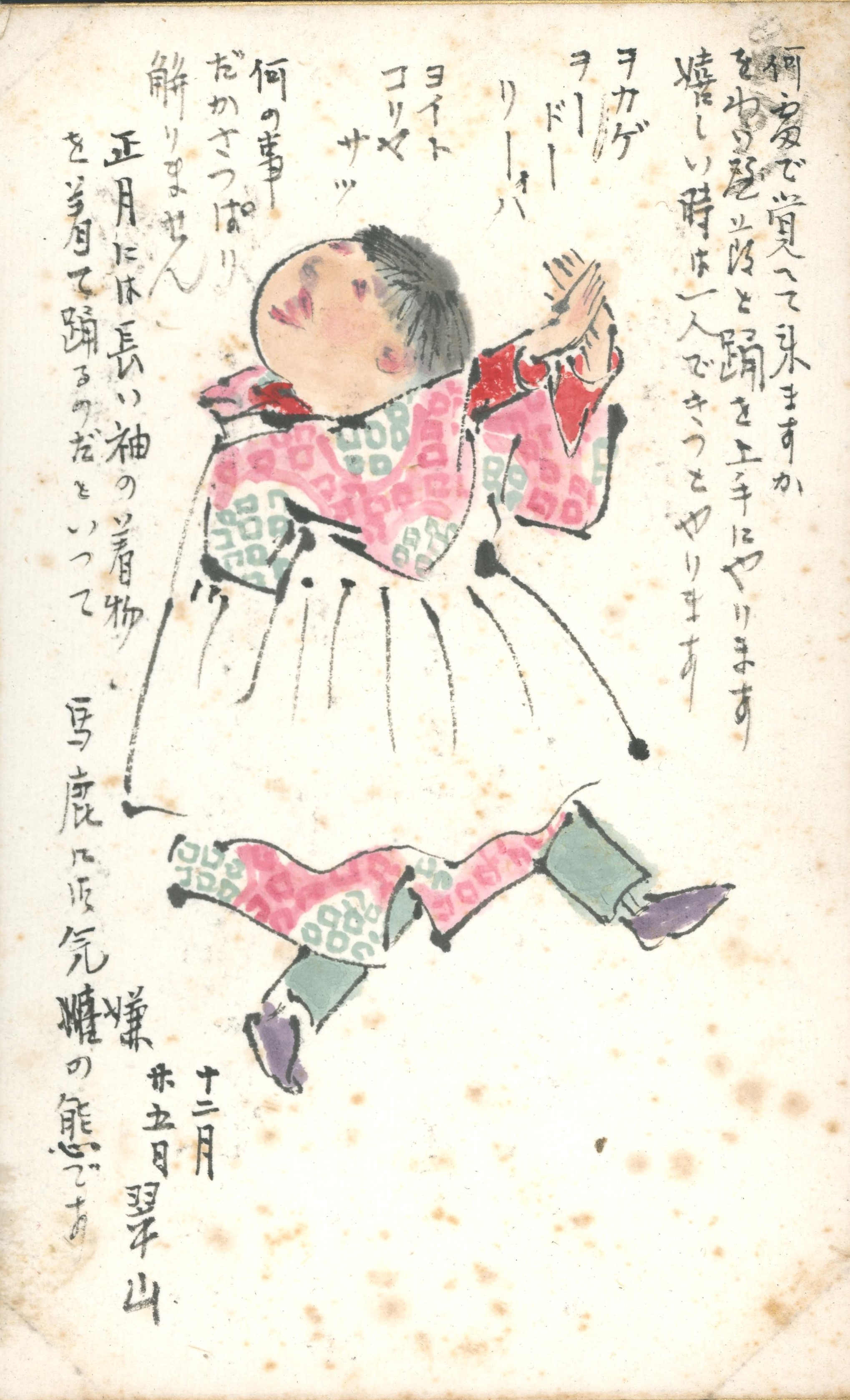 「何の事だかさつぱり解(わか)りません、正月には長い袖の着物を着て踊るのだといつて、馬鹿に御機嫌の態です」