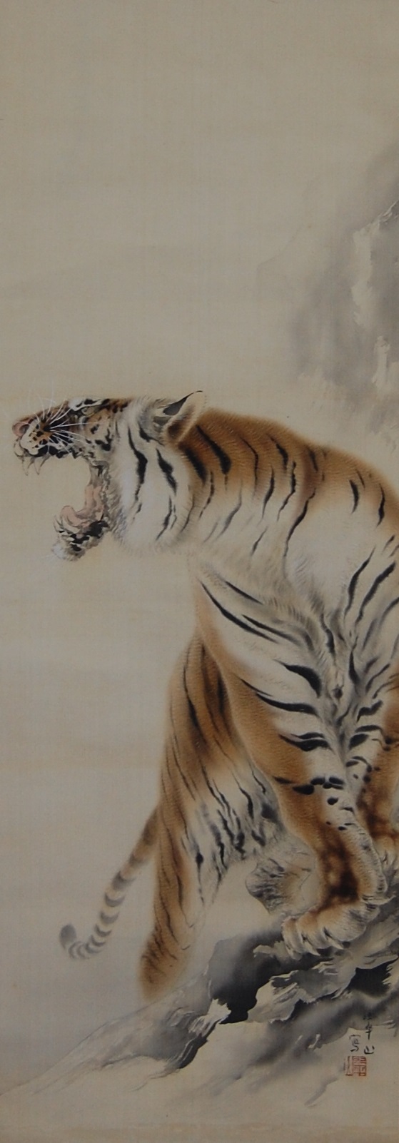 翠山は農作業などは行わず、絵を描いて生活していたようでした。翠山と言えば虎の絵ですが、寅年生まれの父は翠山から虎の絵の掛け軸をいただき、今でも私の家で大切に保管しています。翠山の絵を持っている人が普賢寺地域には少なからずおられますが、それは、翠山が糊口をしのぐために虎の絵などを描いて売っていたからというのと、また翠山を盛り上げる後援会のようなものを普賢寺地域でつくっていたからだと思います。