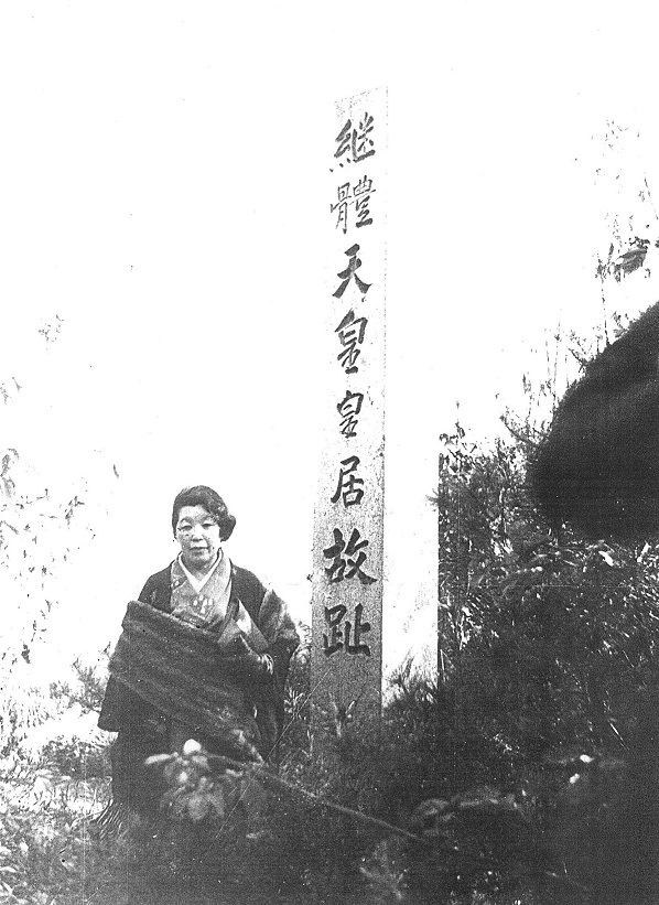 掲載の写真は、彼女が奈良から足を延ばし普賢寺村(現京田辺市多々羅)に訪れた際のもので、昭和13年3月頃とされます。この写真は東大寺で管長等を歴任された筒井氏所蔵のもの。北見志保子と筒井家には親交があり、奈良周遊の際にも案内をされたようです。この年の『多磨』8月号には、「筒城の宮」三首が掲載されており、磐之媛が住んだ多々羅の地を訪れた感慨がにじみます。筒城の宮