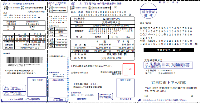 上下水道料金調定システムの更新に伴い、今までみなさんに送付しておりました上下水道料金納入通知書(納付書・請求書)の様式が変更となります。