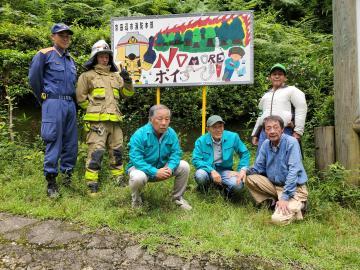 防火啓発看板(薪甘南備山保存会の方たちと)