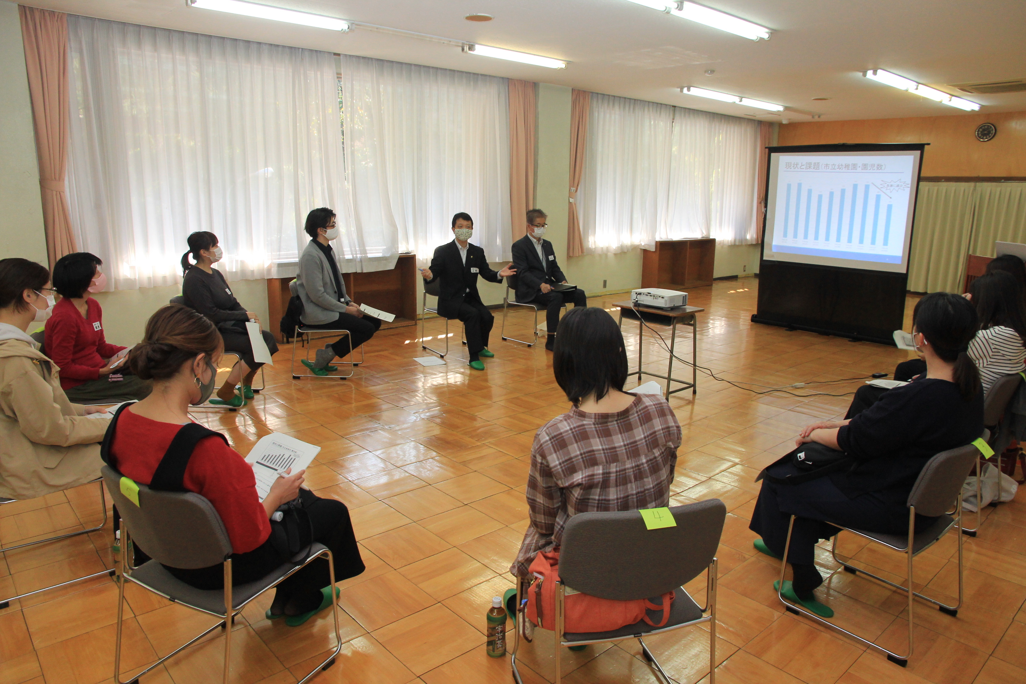 そこで、市内の幼稚園・保育所(園)園児や未就園児の保護者の皆さんと市長がともに考える機会として、4回のミーティングを開催することとし、今回は市立幼稚園・保育所園児の保護者の皆さんと意見交換を行いました。