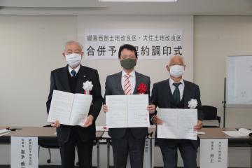 ・綴喜西部土地改良区・大住土地改良区合併予備契約調印式