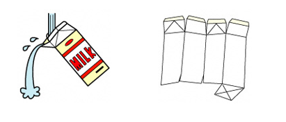 さっと洗って、開いて乾かした後、回収ボックスにお出しください。水洗いのされていない汚れた紙パックは、リサイクル不適合物になりますので、必ず水洗いして、開いた状態でお出しください。