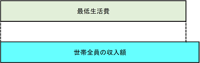 図2のように、世帯全員の収入額が最低生活費を上回る場合には、生活保護の利用はできません。生活保護を受けていた方が収入の増加などにより同様の状態となった場合には、保護は廃止となります。