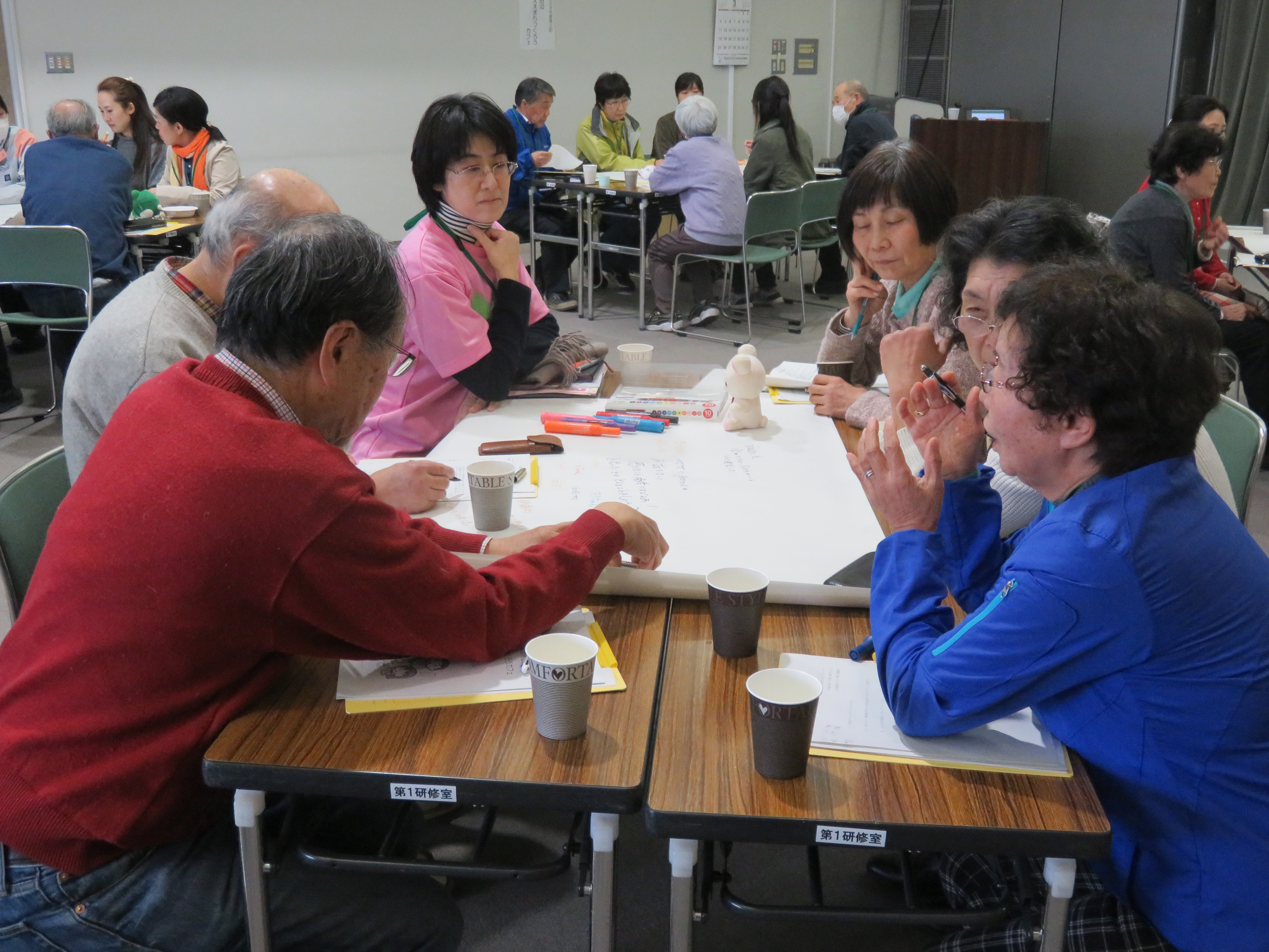 グループとなり、まちづくり事例紹介の感想の共有や、参加者が実践している活動やその悩みなどについて話し合いました。