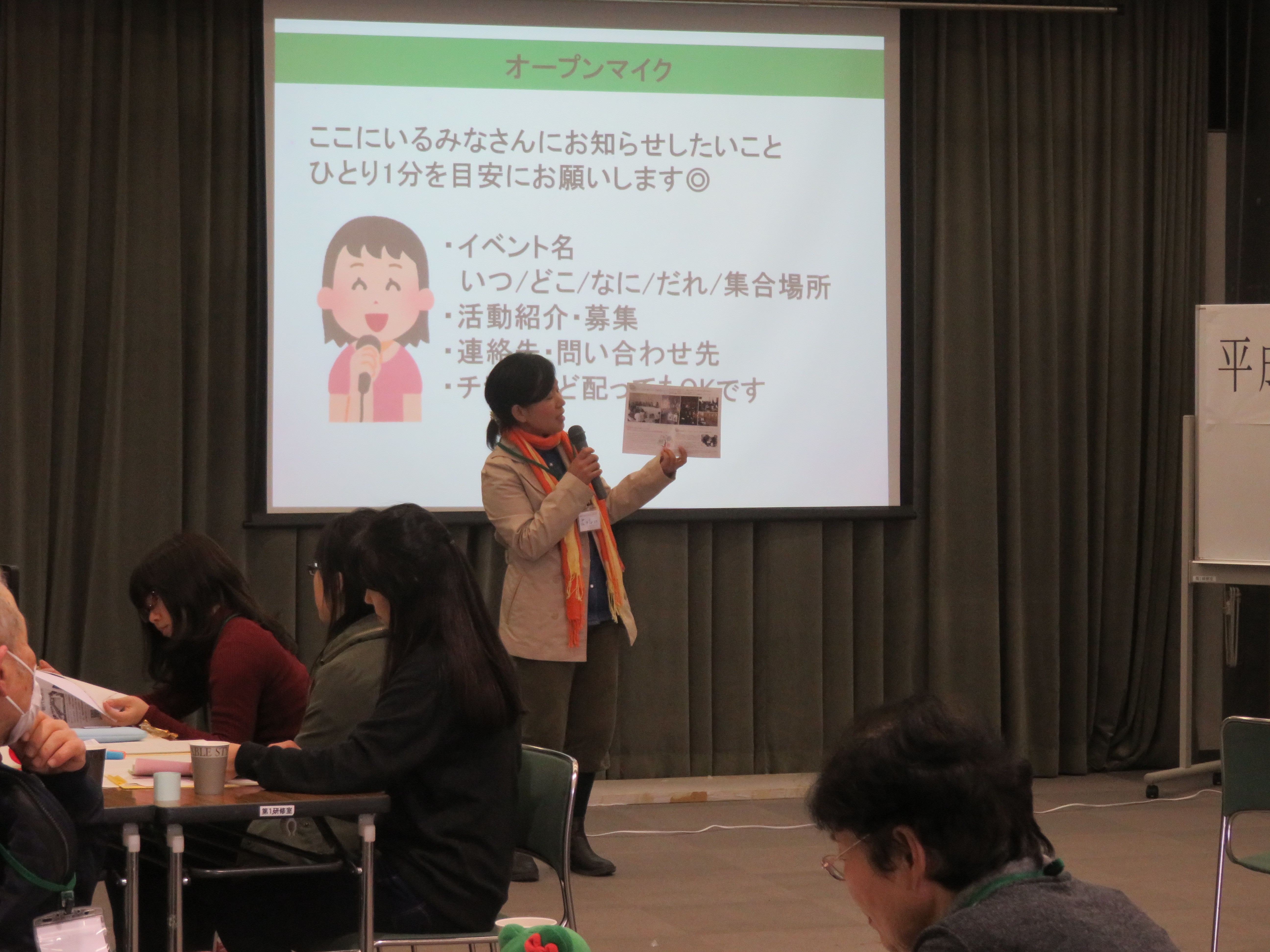 参加者がほかの参加者に向けて、所属している団体の事業紹介やイベント告知を行いました。
